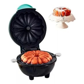 Mini máquina de fazer bolos bundt, compacta, com aquecimento rápido, luz indicadora de pronto, pés antiderrapantes e superfície antiaderente.