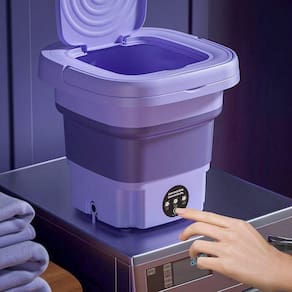 Mini Máquina de Lavar Dobrável e tenha roupas limpas onde estiver.