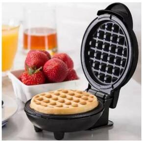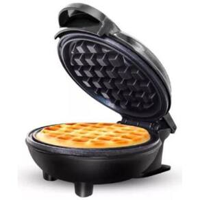 Mini máquina de waffle elétrica portátil com 350W de potência e voltagem de 110V. Possui diâmetro de 12cm e assadeira tipo onda. Método de aquecimento do chassi e controle mecânico. Tamanho compacto de 18 x 12,5 x 8,5cm e capacidade de 0,5L.Porta-fio