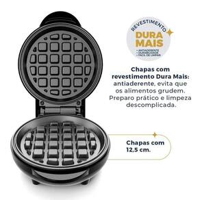 Base antiderrapante; Alça para abrir chapa superior; Luz indicadora de funcionamento; Cozimento uniforme dos alimentos; Maior durabilidade; Fácil de limpar; Mais agilidade e eficiência no preparo de waffles; Melhor manuseio do item durante o preparo dos alimentos; Não precisa usar óleo; Com suporte para armazenar o cabo;, Base antiderrapante; Alça para abrir chapa superior; Luz indicadora de funcionamento; Cozimento uniforme dos alimentos; Maior durabilidade; Fácil de limpar; Mais agilidade e eficiência no preparo de waffles; Melhor manuseio do item durante o preparo dos alimentos; Não precisa usar óleo; Com suporte para armazenar o cabo;Porta-fio