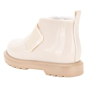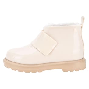 A Mini Melissa Chelsea Boot Baby, com acabamento vulcanizado e fechamento por fita duplamente aderente. Medida do cano de 7,5 cm e circunferência de 24 cm. Salto de 2,5 cm. Palmilha em PU, sola em EVA e interior em pelo garantem conforto e flexibilidade. Melflex é 100% reciclável