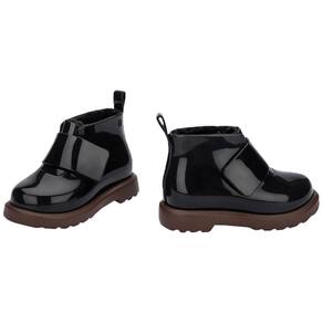 A Mini Melissa Chelsea Boot Baby, com acabamento vulcanizado e fechamento por fita duplamente aderente. Medida do cano de 7,5 cm e circunferência de 24 cm. Salto de 2,5 cm. Palmilha em PU, sola em EVA e interior em pelo garantem conforto e flexibilidade. Melflex é 100% reciclável