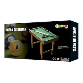 Produzida em MDF durável, reforçado e seguro, a mesa possui design compacto, fácil de montar e transportar. Acompanha 15 bolas coloridas, 1 bola branca, 2 tacos de bilhar, 1 cubo de giz e 1 triângulo.