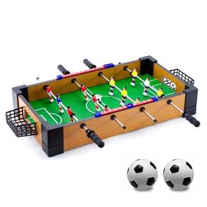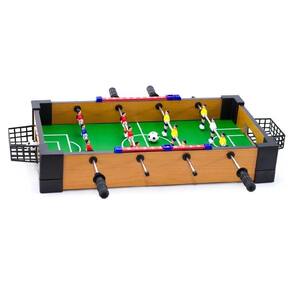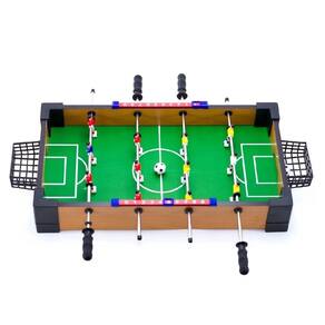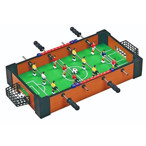 Brinquedo Infantil Mini Mesa de Pebolim em Madeira - Zippy Toys A mini mesa de pebolim da Zippy Toys é uma encantadora interpretação do clássico jogo de futebol de mesa, especialmente projetada para crianças e entusiastas de jogos. Com uma estrutura em madeira de alta qualidade, ela apresenta um toque rústico e elegante. Suas dimensões compactas a tornam perfeita para brincadeiras em mesas pequenas, é fácil de transportar em viagens e ideal para se divertir em qualquer espaço da casa. A superfície do jogo é meticulosamente pintada de verde, imitando um campo de futebol, com detalhes em branco que delineiam as linhas e os gols. Acompanha duas bolas e conta com um marcador de gols, proporcionando uma experiência de jogo completa. Os jogadores, esculpidos em madeira e pintados à mão, exibem cores vibrantes e expressões divertidas, trazendo vida e emoção a cada partida. As hastes são firmes e bem posicionadas, permitindo que as crianças girem e movimentem os jogadores com facilidade, enquanto as manoplas oferecem um excelente grip. O design robusto garante durabilidade, assegurando que a mesa suporte longas horas de diversão. Perfeita para jogos em família, a mini mesa de pebolim da Zippy Toys combina tradição e entretenimento, encantando tanto crianças quanto adultos.
