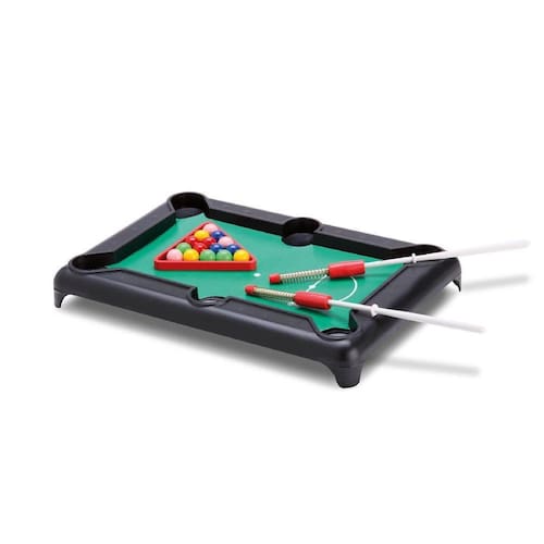 ESPECIFICACOES: - Recomendado a partir de 4 anos - Dimensoes do Produto (CLA): 19 x 13 x 3 cm - 01 Mini mesa de Bilhar - 02 Tacos - 16 Bolas - 01 Triangulo - Material: Plastico - Marca: Samba Toys