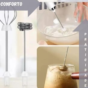 Mini mixer 2 em 1, 3 opções de velocidade, bateria recarregável via USB, haste em inox removível, leve (200g), bivolt.Acompanha copo