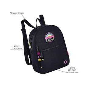 - possui 1 bolso principal e 1 bolso externo. - confeccionada em nylon com detalhe em material telado. - matelassê frontal com listras. - alça acetinada. - zíper tratorado. - design moderno na parte frontal. - banho de metal preto. - puxadores de corda. - forro de poá.