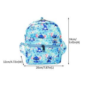 ?PADRÃO DE COSTURA DE DESENHO ANIMADO?A mochila é estampada com desenho animado Stitch e outros padrões, muito fofos. A impressão é nítida e não desbota facilmente.