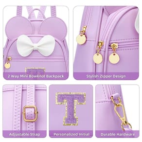 Mini mochila KKXIU Girls Initial Bowknot de couro sintético roxa