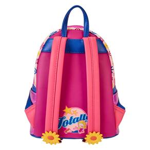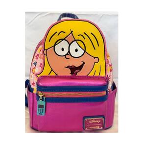Loungefly Mini mochila Lizzie McGuire Cosplay - Características: couro vegano (poliuretano), alças de ombro ajustáveis com detalhes em apliques, bolso frontal com zíper, bolsos laterais, pingente de zíper de silicone, ferragens douradas brilhantes, apliques, gravadas, bordadas, detalhes metálicos e estampados, e forro interno combinado. - Esta mochila é um produto oficialmente licenciado pela Disney.
