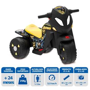 A Batmoto Elétrica 6V chega em uma versão renovada, mais leve e moderna. Com câmbio de duas marchas e aceleração progressiva no pedal, garante uma pilotagem suave e segura para muita diversão.