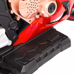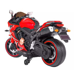 Trazendo ainda mais magia para a brincadeira, emite luzes nas rodas, sons de partida e músicas através do Bluetooth. A Mini Moto conta também com conexão bluetooth (basta conectar o celular e escutar suas músicas). Para maior segurança, dispõe de duas rodinhas de apoio que auxiliarão no equilíbrio. Possui bateria 12V com carregamento completo no período de 8 à 10 horas via energia elétrica e Banco de Couro.