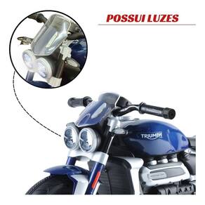Mini moto eletrica infantil 6v triumph rocket custom classic bw382 Cor: azul Mini motinha elétrica infantil importway triumph rocket 3gt Com a mini moto elétrica triumph rocket 3gt a diversão está garantida, por ser um produto licenciado possui detalhes realistas que fazem a criança se sentir dirigindo uma moto de verdade. Possui duas rodas e um par de rodas de apoio que geram maior estabilidade, trazendo mais segurança para a criança. Para melhorar ele é motorizado com bateria 6v recarregável. Chegando a uma velocidade de até 3,5 km/h, a emoção está garantida. Possui duas velocidades, além de farol e música. Especificações: Peso máximo recomendado kg : 30kg Velocidade máxima: 3,5km/h Cor: azul Bateria: 6v recarregável Funcionamento: acionamento via pedal Piso ideal: concreto, piso e asfalto Tempo de carregamento da bateria: 8 a 12 horas Tempo de funcionamento aproximado do produto: 1h30 Rodas: 02 rodas com banda de pvc e 2 rodinhas de apoio Sistema de direção: manual Certificado pelo inmetro Características: Luz de farol Comando para frente, direita e esquerda Bateria 6v Bateria recarregável Certificado pelo inmetro Você está adquirindo: 01 mini motinha elétrica infantil importway triumph rocket 3gt 01 carregador bivolt 110/220v 01 manual de montagem compra garantida - ao comprar conosco a sua compra é 100% garantida, o seu dinheiro está seguro até a entrega. 90 dias. Imagens meramente ilustrativas Importway importando soluções com qualidade, inovação e responsabilidade desde 2007. Homologação Inmetro: IP-BRI-0298/2022-77 Marca: Não Informado