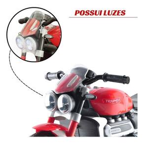 Mini moto eletrica infantil 6v triumph rocket custom classic bw382 Cor: vermelho Mini motinha elétrica infantil importway triumph rocket 3gt Com a mini moto elétrica triumph rocket 3gt a diversão está garantida, por ser um produto licenciado possui detalhes realistas que fazem a criança se sentir dirigindo uma moto de verdade. Possui duas rodas e um par de rodas de apoio que geram maior estabilidade, trazendo mais segurança para a criança. Para melhorar ele é motorizado com bateria 6v recarregável. Chegando a uma velocidade de até 3,5 km/h, a emoção está garantida. Possui duas velocidades, além de farol e música. Especificações: Peso máximo recomendado kg : 30kg Velocidade máxima: 3,5km/h Cor: azul Bateria: 6v recarregável Funcionamento: acionamento via pedal Piso ideal: concreto, piso e asfalto Tempo de carregamento da bateria: 8 a 12 horas Tempo de funcionamento aproximado do produto: 1h30 Rodas: 02 rodas com banda de pvc e 2 rodinhas de apoio Sistema de direção: manual Certificado pelo inmetro Características: Luz de farol Comando para frente, direita e esquerda Bateria 6v Bateria recarregável Certificado pelo inmetro Você está adquirindo: 01 mini motinha elétrica infantil importway triumph rocket 3gt 01 carregador bivolt 110/220v 01 manual de montagem compra garantida - ao comprar conosco a sua compra é 100% garantida, o seu dinheiro está seguro até a entrega. 90 dias. Imagens meramente ilustrativas Importway importando soluções com qualidade, inovação e responsabilidade desde 2007. Homologação Inmetro: IP-BRI-0298/2022-77 Marca: Não Informado Ean: 7908449937389