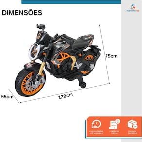 Características Principais: Modelo: Moto Racer Material: Plástico de alta qualidade Bateria: 12V 4.5Ah Velocidade: De 3 a 6 km/h, com ajuste de alta e baixa velocidade Movimento: Para frente e para trás Motor: Dois motores modelo 550 Peso Suportado: Até 30 kg Idade Recomendada: A partir de 3 anos Brilho nas Rodas: Design moderno e atraente. Áudio: Suporte para MP3, som de trombeta e músicas integradas. Iluminação: Luzes vibrantes para maior visibilidade.