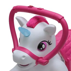 Este modelo vem equipado com detalhes adicionais como luzes coloridas e efeitos sonoros que elevam ainda mais a experiência de brincar, estimulando a imaginação e criando uma atmosfera mágica durante cada aventura. Os acabamentos em cores vibrantes e os detalhes inspirados em unicórnios fazem com que esta motoca seja um verdadeiro destaque em qualquer lugar.