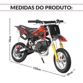 A Mini Moto Dirt 49cc ImportWay é perfeita para quem busca aventura, adrenalina e diversão ao ar livre. Com design esportivo e robusto, ela entrega a experiência das motos off-road em um tamanho compacto, ideal para jovens pilotos iniciantes (sempre com supervisão de um adulto).