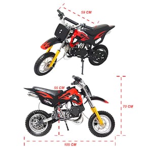 Com a Mini Moto Cross 49CC Dirt Bike a criançada vai se divertir como nunca! Com motor 2 Tempos de 49CC ela permite uma experiência única e verdadeira pra as crianças com velocidade máxima de 45 km/h. É recomendada para crianças a partir dos 4 anos e que pesem até 55 kg. Conta com freio a disco nas duas rodas, pneus para qualquer tipo de solo e tanque para até 1,5 litros de combustível. Apresenta design inovador e é uma verdadeira máquina para qualquer tipo de solo como asfalto ou terra e que torna a brincadeira cheia de aventura.