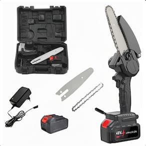 Mini motosserra 48v ideal para galhos finos Descrição do anúncio: Transforme suas atividades de jardinagem e corte com a mini serra elétrica 48v portátil bivolt. Projetada para proporcionar uma experiência ergonômica e confortável, esta motosserra é perfeita para cortes e podas em qualquer lugar, especialmente em áreas de difícil acesso. Com um motor escovado potente, garante um desempenho eficiente e rápido, minimizando o cansaço nas mãos. Ideal para serviços domésticos, jardinagem e podas simples, a mini serra elétrica oferece praticidade e mobilidade sem a necessidade de arrastar fios, graças à sua bateria inclusa.
