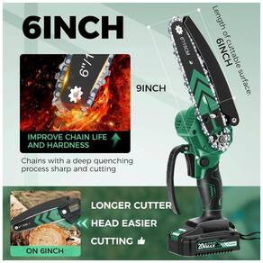Esta mini motosserra sem fio de 6 polegadas é uma ferramenta perfeita para mães, amigas, faz tudo e mulheres que gostam de trabalhar com madeira ou de organizar o quintal. Com um comprimento de face cortável de 6 polegadas e um comprimento total de chapa de aço de 9 polegadas, você pode cortar árvores mais grossas para atender melhor às suas necessidades. A mini motosserra Saker adapta uma corrente guia de alta qualidade que passou por um processo de têmpera profunda para garantir um corte suave. Além disso, usa um motor de cobre puro, que é muito potente, tornando a eficiência de corte maior e mais rápida. A mini motosserra Saker é equipada com uma bateria de lítio recarregável de 20 V 1500 mAh, que pode ser usada por um longo tempo. A mini motosserra Saker de 6 polegadas sem fio com 2 baterias pode ser carregada a qualquer momento, tornando a conveniente e rápida. Embora a mala seja pequena, ela pode armazenar todos os acessórios perfeitamente. A mini motosserra Smart Saker é uma motosserra pequena, prática, rápida e fácil de montar, levando apenas 1 minuto para toda a instalação. A motosserra Saker de 6 polegadas tem uma superfície de corte mais longa, permitindo que você corte árvores um pouco mais grossas com menos esforço, proporcionando uma melhor experiência. Esta motosserra também tem um motor de alta eficiência com fio de cobre atualizado, oferecendo à sua ferramenta maior tempo de execução, mais torque e mais potência, o que leva a menos desgaste, estendendo a vida útil da motosserra portátil Smartsaker. Se você tiver alguma dúvida sobre as motosserras elétricas, a qualquer momento, estamos sempre disponíveis.