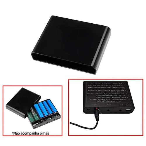 Fonte de Alimentação Ininterrupta UPS Portátil - 5V / 9V / 12V - Entrada para 6 Baterias 18650 - Ideal para Câmeras e Roteadores A Fonte de Alimentação Ininterrupta UPS portátil com entrada para 6 baterias 18650 é a solução prática e eficiente para garantir o fornecimento contínuo de energia a dispositivos sensíveis, como câmeras de segurança, roteadores, modems, switches de rede, sistemas IoT e equipamentos de baixo consumo. Com múltiplas saídas de tensão 5V, 9V e 12V , este equipamento oferece versatilidade e proteção contra quedas de energia, oscilação de rede e desligamentos inesperados. Principais características técnicas: Tensão de saída: 5V / 9V / 12V selecionável conforme necessidade do dispositivo Portas de saída: 1x USB 5V para dispositivos como roteadores ou câmeras via cabo USB 1x Saída DC 9V 1x Saída DC 12V Entrada de energia: Alimentação via 6 baterias 18650 não inclusas Capacidade total: Dependente da capacidade das baterias instaladas ex: 6x 3.000mah = até 18.000mah Tipo de bateria compatível: Bateria recarregável 18650 de íons de lítio, com ou sem proteção de circuito PCB Cor: Preto Função UPS: Comutação automática para as baterias em caso de falha na energia externa, mantendo os dispositivos ligados sem interrupção Proteções integradas: Contra sobrecarga e descarga excessiva Contra curto-circuito Gerenciamento de carga e descarga inteligente