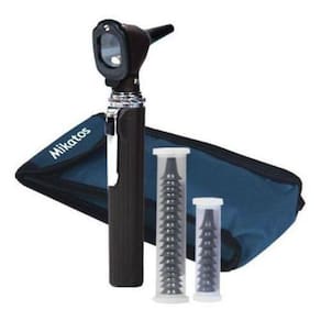 Mini Otoscopio Especulos E Estojo MikatosO Otoscópio mini Mikatos oferece um excelente custo benefício, é leve e pode ser levado no bolso.Características do produtoIndicaçõesO otoscópio mini Mikatos é específico para exames das partes internas do ouvido, possui uma lente de aumento de 2,5x para uma análise com excelente nitidez.Possibilitando ao profissional a amplitude e iluminação suficientes para um diagnóstico preciso.ComposiçãoPlastico , AlumínioDiferenciais e benefíciosTamanho reduzido e ótimo custo beneficioItens inclusosO otoscópio mini Mikatos é composto de:. Cabo com botão liga/desliga. Presilha em aço inoxidável. Cabeçote com lente acrílica de 2,5x de aumento. 05 espéculos pretos reutilizáveis nº 1 - 2,5mm. 04 espéculos pretos reutilizáveis nº 2 - 4,0mm. 10 espéculos cinzas descartáveis nº 1 - 2,5mm. 10 espéculos cinzas descartáveis nº 2 - 4,0mm. 01 lâmpada 2,5Volts. 01 estojo para acondicionamentoFuncionamento: 2 pilhas pequenas alcalinas(não incluídas)Altura do produto (cm) 16,00Largura do produto (cm) 3,00Profundidade do produto (cm) 3,00Peso líquido (Kg) 0,157Altura da embalagem (cm) 18,00Largura da embalagem (cm) 10,00Profundidade da embalagem (cm) 4,00Peso bruto com embalagem (Kg) 0,157Higiene e ConservaçãoÉ constituído de peças móveis com sistema de rosca (cabo e cabeçote) e de fácil limpezaGarantia 12 mesesRegistro ANVISA/M.S. 80218930006
