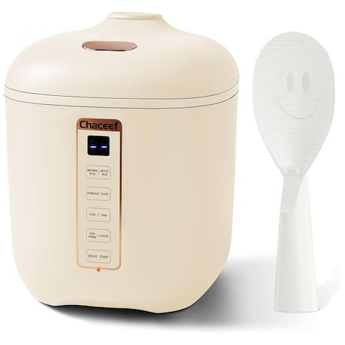 Capacidade de 2 xícaras não cozidas a mini panela de arroz CHACEEF 1,2 litros pode cozinhar até 2 xícaras de arroz branco não cozido quando usar o copo medidor padrão de 160ml, perfeito para famílias pequenas de 1 a 3 pessoas. O tamanho portátil aproximadamente 7,8 x 7,6 x 6,45 ou 19,8 x 19,3 x 16,4 centímetros não ocupa muito espaço, tornando o não apenas um essencial para dormitórios, mas também muito conveniente para guardar em uma pequena cozinha ou levar para viajar ou acampar.