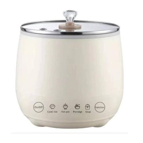 Mini panela elétrica multifuncional com revestimento cerâmico, ideal para arroz, caldos, legumes e massas. Possui capacidade de 1,8 litros, potência de 350W e voltagem 110V. Superfície antiaderente para fácil limpeza.Lâmpada piloto