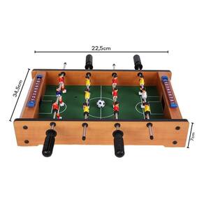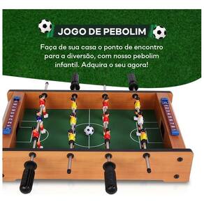 Mini pebolim de mesa totó 35cm Transforme qualquer ambiente em um verdadeiro estádio com esta incrível mesa de pebolim. Agora as crianças poderão aproveitar ao máximo este jogo clássico na sua versão mini. Com estrutura resistente e acabamento colorido, ela é perfeita para reunir amigos e familiares em partidas emocionantes. Possui hastes com manoplas ergonômicas, jogadores fixos de plástico durável e marcador de pontos manual em cada lado. Ideal para estimular a coordenação motora, o raciocínio rápido e o espírito de equipe das crianças. Dimensões aproximadas do produto montado : altura: 6 centímetros largura: 22 centímetros comprimento: 35 centímetros peso: 1 kg embalagem contém: 1 mesa desmontada, é necessário montagem 12 jogadores 2 marcadores de pontuação 2 bolas de futebol Homologação Inmetro: CE-BRI-031/22-F11 Marca: Não Informado Ean: 7899527104543