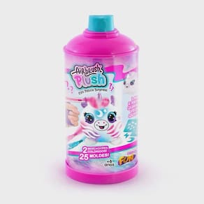A mini surpresa Air Brush Plush vem uma linda latinha e acompanha vários acessórios para os pequenos soltarem a imaginação.