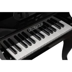Mini Piano De Cauda Infantil TurbinhoPiano de cauda acústico infantil com 30 teclas turbinhoO mini piano de cauda turbinho, foi desenvolvido para despertar os dons naturais do "pequeno" músico. Extremamente resistente ele é todo construído em madeira, com uma acabamento impecável, laqueado em alto brilho, finaliza a montagem todas as travas, buchas e parafusos em aço garantem a robustez desse piano.Sentado na banqueta, cada som emitido será uma grande alegria e com entusiasmo a criança se envolve e penetra no fantástico mundo da música e poderá dar a primeira audição de muitas outras que poderão vir pela vida a fora. Mais que um brinquedo, um instrumento acústico.Turbinho nutre um ouvido musical e promove a coordenação motora.Especificações30 teclas = 2 oitavas e meia indicado para crianças de 3 a 5 anos Medidas do piano montado: 49,3 cm de altura 47,5 cm de largura 48,5 cm de comprimento Peso do produto:10,50 kg Banquinho: 28 largura x 20 altura x 18 comprimento Montagem fácil e rápida.