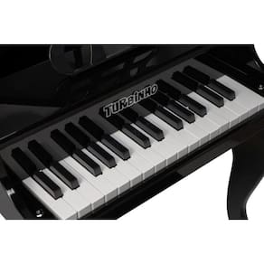 Mini Piano De Cauda Infantil Turbinho Piano de cauda acústico infantil com 30 teclas turbinho O mini piano de cauda turbinho, foi desenvolvido para despertar os dons naturais do "pequeno" músico. Extremamente resistente ele é todo construído em madeira, com uma acabamento impecável, laqueado em alto brilho, finaliza a montagem todas as travas, buchas e parafusos em aço garantem a robustez desse piano. Sentado na banqueta, cada som emitido será uma grande alegria e com entusiasmo a criança se envolve e penetra no fantástico mundo da música e poderá dar a primeira audição de muitas outras que poderão vir pela vida a fora. Mais que um brinquedo, um instrumento acústico. Turbinho nutre um ouvido musical e promove a coordenação motora. Especificações 30 teclas = 2 oitavas e meia indicado para crianças de 3 a 5 anos Medidas do piano montado: 49,3 cm de altura 47,5 cm de largura 48,5 cm de comprimento Peso do produto:10,50 kg Banquinho: 28 largura x 20 altura x 18 comprimento Montagem fácil e rápida. Ean: 7898475682479