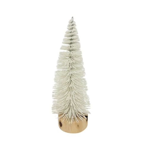 -01 Unidade Mini Pinheiro Decorativo Branco Glitter 16cm Base Madeira