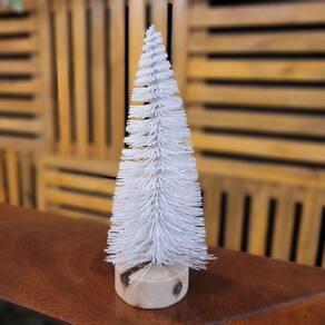 Mini Pinheiro Decorativo Branco Base Tronco Madeira 16cm