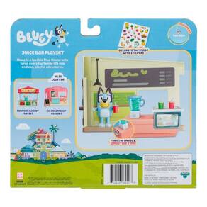 Leve para casa toda a diversão e imaginação da série com o Mini Playset Barraca de Suco Bluey! Com este cenário encantador, as crianças podem ajudar a Bluey a escolher seu suco favorito enquanto se divertem com acessórios superfofos como balcão, copos e um liquidificador Acompanha uma figura exclusiva e articulada da Bluey com 6 cm de altura que pode segurar o copo de suco, tornando a brincadeira ainda mais realista O playset também vem com uma cartela de adesivos para personalizar a barraca do jeito que quiser Ideal para recriar cenas do desenho ou inventar novas aventuras, o Mini Playset Barraca de Suco é compatível com outras figuras da linha e perfeito para estimular a criatividade das crianças Transforme qualquer momento em uma deliciosa brincadeira com Bluey!