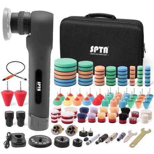 - ?Carregamento rápido e durável? Este mini polidor de carro pode ser totalmente carregado em apenas 45 minutos, usando baterias de lítio de alta resistência, muito duráveis e equipado com duas baterias para você, resolve completamente o problema da falta de energia. Preparamos um conjunto muito completo de ferramentas para ajudar você a polir cada centímetro da superfície do seu veículo com perfeição.