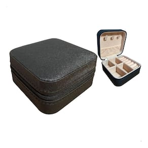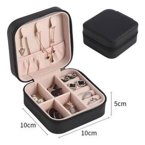 Mini Porta Jóias Viagem Caixa Zíper Organizadora Preto Porta-joias Preto Minimalista - Compacto e Elegante