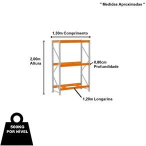 Mini Porta Pallet 500Kg - Inicial - 2,00m x 1,20m x 0,80cm O Mini Porta Pallet é produzido em aço resistente, com capacidade de 500 kg por nível e reforço nas laterais é indicado para depósitos, estoques e exposição, como: pet shops, oficinas, lojas de materiais de construção e mini atacarejos. Prático e versátil dispensa o uso de empilhadeiras, onde as mercadorias são depositadas e retiradas manualmente. Além disso, é de fácil montagem, com a simples colocação de porcas e parafusos, unindo as longarinas às colunas. A pintura dos produtos é feita por meio da técnica eletrostática, com tratamento anticorrosão uniforme e resistente. Os Mini Porta Pallets possuem qualidade, resistência e durabilidade garantidas pelo uso de matérias-primas de alto padrão, processos produtivos com a mais alta tecnologia do mercado e um cuidado especial em cada etapa de produção.A Fileira de Mini Porta Pallets deve ser iniciada com a Mini Porta Pallet INICIAL que possui 2 colunas. O Mini Porta Pallet CONTINUAÇÃO possui 1 coluna, utilizada para dar continuidade à fileira e não pode ser montada individualmente.Dimensões Aproximadas Altura: 2,00mProfundidade: 0,80mLargura Longarina: 1,20m Comprimento Total Montado: 1,30m " Medida Aproximada "Características Material: AçoCor: Cinza/LaranjaCapacidade por Nível: 500kgCapacidade Peos Total: 1500kg Mini Porta Pallet INICIAL possui 02 Laterais, indispensável para INICIAR uma fileira. Contém 02 Laterais 2,00m x 0,80m - Amapá03 Pares Longarinas 1,20m x 0,80m - Amapá Entrega Via: TransportadoraPrazo: Consulte pelo CEP com nossos vendedores Garantia Contra Defeitos de Fabricação: 12 meses DevoluçãoEm até 7 dias após a chegada do produto, você tem o direito de realizar a devolução. Mas para isso, a mercadoria não deve ter sido montada, utilizada e danificada.Horário de AtendimentoSegunda a Sexta-feira, das 13:00h às 17:00h.Dúvidas, Informações, Consulte Nossos Vendedores Via WhatsApp.\nFicha Técnica\nCódigo AMP0118\nModelo Linha Mini Porta Pallet 500kg\nCategoria Mini Porta Pallet Amapá\nMarca Amapá Metalúrgica\nItens Inclusos 02 Laterais 2,00m x 0,80m - Amapá03 Pares Longarinas 1,20m x 0,80m - Amapá\nGarantia 1 ano após o recebimento do produto\nDisponibilidade Disponível em 2 dias úteis\nInformação adicional Dúvidas, Informações, Consulte Nossos Vendedores Via WhatsApp.