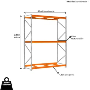 Mini Porta Pallet 500Kg INICIAL 2,50m x 1,80m x 80cm - Amapá \nO Mini Porta Pallet Amapá é produzido em aço resistente, com capacidade de 500kg POR NÍVEL e reforço nas laterais é indicado para depósitos, estoques e exposição, como: pet shops, oficinas, lojas de materiais de construção e mini atacarejos, processos produtivos com a mais alta tecnologia do mercado e um cuidado especial em cada etapa de produção Prático e versátil dispensa o uso de empilhadeiras, onde as mercadorias são depositadas e retiradas manualmente. Além disso, é de fácil montagem, com a simples colocação de porcas e parafusos, unindo as longarinas às colunas. A pintura dos produtos é feita por meio da técnica eletrostática, com tratamento anticorrosão uniforme e resistente. A Fileira de Mini Porta Pallets deve ser iniciada com o Mini Porta Pallet INICIAL que possui 2 colunas. O Mini Porta Pallet CONTINUAÇÃO possui 1 coluna, utilizada para dar continuidade à Fileira e não pode ser montada individualmente. Dimensões Aproximadas Altura: 2,50mProfundidade: 0,80mComprimento Longarina: 1,80m Comprimento Total Montada: 1,90m " Medida Aproximada " Características Material: AçoMarca: AmapáCor: Cinza/LaranjaCapacidade por Nível: 500kg Capacidade Total Montada : 2000kgModelo: Mini Porta Pallet 500kg INICIAL 3 Níveis Mini Porta Pallet INICIAL possui 02 Laterais, indispensável para Iniciar uma Fileira. Contém 02 Laterais 2,50m x 80cm - Amapá03 Pares Longarinas 1,80m x 0,80m - Amapá Entrega Via: TransportadoraPrazo: Consulte pelo CEP com nossos vendedores Garantia Contra Defeitos de Fabricação: 12 meses DevoluçãoEm até 7 dias após a chegada do produto, você tem o direito de realizar a devolução. Mas para isso, a mercadoria não deve ter sido montada, utilizada e danificada.Horário de AtendimentoSegunda a Sexta-feira, das 13:00h às 17:00h.Dúvidas, Informações, Consulte Nossos Vendedores Via WhatsApp.\nFicha Técnica\nCódigo 1619\nModelo Linha Mini Porta Pallet 500kg\nCategoria Mini Porta Pallet Amapá\nMarca Amapá Metalúrgica\nItens Inclusos 02 Laterais 2,50m x 80cm - Amapá03 Pares Longarinas 1,80m x 0,80m - Amapá\nGarantia 1 ano após o recebimento do produto\nDisponibilidade Disponível em 2 dias úteis\nInformação adicional Dúvidas, Informações, Consulte Nossos Vendedores Via WhatsApp.