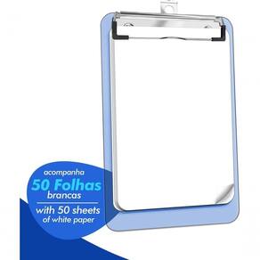 Prendedor Metálico Wire Clip: Equipado com um prendedor resistente em metal com cantos emborrachados, garantindo que suas folhas fiquem firmemente fixadas durante o uso; Possui um gancho, que permite que a prancheta seja pendurada