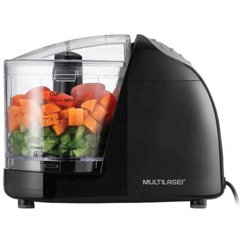 Mini processador multilaser, tenha uma diversidade de descobertas na cozinha Desenvolvida com capacidade de 350ml para você preparar grandes quantidades de alimentos de uma só vez, possui botão de pulsar para ter maior controle do resultado desejado da trituração dos alimentos, com a alta velocidade ela te proporciona maior praticidade no seu dia a dia tornando mais rápido o preparo das suas refeições. Vem com tampa com trava para sua maior segurança, botão pulsar, recipiente desmontável para facilitar a limpeza e armazenamento, laminas de aço para moer ou triturar com alto desempenho, trava de segurança para evitar acidentes durante o preparo e pés antideslizantes. Suas receitas mais práticas e deliciosas. Especificações técnicas Dimensões do produto10x18x12cm Potência 100w Peso produto (kg) 0.639 Garantia 1 ano Cor principal preta Ean 7899838852270 Composição do material plastico Voltagem 127v