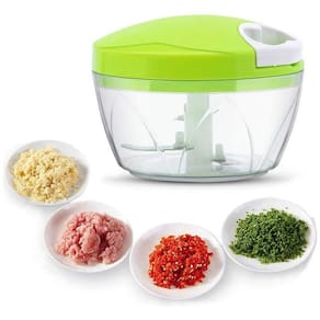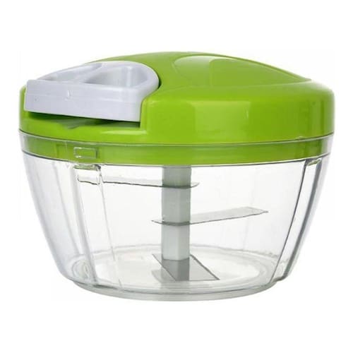 Mini Processador De Alimentos 3 Lâminas Manual Cozinha O triturador e processador de alimentos manual funciona de maneira bem simples: Basta inserir o alimento no recipiente de acrílico, fecha-lo, puxar a corda retrátil cerca de 5 vezes e pronto, o alimento estará processado. A espessura do alimento pode ser controlada facilmente através do número de vezes em que a corda é puxada. Quanto mais vezes, mais processado será o alimento. O processador surge como uma excelente opção para o uso diário, visto que o acionamento por corda é mais rápido e prático do que os métodos tradicionais e as três lâminas de corte permitem um corte mais preciso. Além disso, os materiais em acrílico e aço inox fazem com que o processador seja extremamente bonito e durável para o uso constante. Por fim, o tamanho do processador permite que o mesmo seja muito anatômico e seu uso, seja mais confortável do que outras opções existentes no mercado. Mais características do produto: - Material: Acrílico e Aço Inoxidável; - Possui três lâminas Inox para corte; - Acionamento giratório através de corda retrátil; - Processa os alimentos de forma rápida e eficiente; - Formato anatômico e prático; - Não deixa pedaços grandes após o processamento; - Fácil manuseio; Dimensões: - Altura: 9 cm - Diâmetro: 12 cm