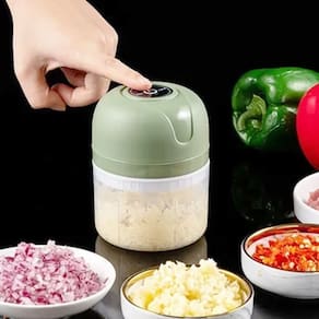 Livre-se da Tomada: Com sua bateria recarregável via USB, você pode usá-lo em qualquer lugar, a qualquer hora. Perfeito para apartamentos pequenos, viagens, acampamentos ou até mesmo para preparar um lanche rápido no trabalho. Triture e Pique em Segundos: Equipado com lâminas afiadas de aço inoxidável, este mini processador tritura alho, cebola, gengibre, pimentas, ervas, nozes e até mesmo pequenas porções de carne cozida ou legumes em instantes. Diga adeus ao cheiro de alho nas mãos! Fácil de Limpar: Suas partes removíveis são simples de desmontar e lavar, facilitando a higiene após o uso. Design Compacto e Elegante: Ocupa pouquíssimo espaço na sua bancada ou armário. Seu design moderno e discreto se adapta a qualquer cozinha. Segurança em Primeiro Lugar: Possui mecanismos de segurança que impedem o funcionamento caso as peças não estejam corretamente encaixadas, garantindo uma utilização tranquila. Versatilidade para o Dia a Dia: Ideal para preparar temperos frescos, papinhas de bebê, molhos, patês, recheios e muito mais.