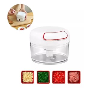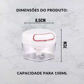 Mini processador manual de temperos com capacidade de 150 ml. Feito em plástico, na cor incolor e branco. Medidas: 8,5cm x 7,0cm (largura x altura). Peso líquido: 151 gramas.Acessórios
