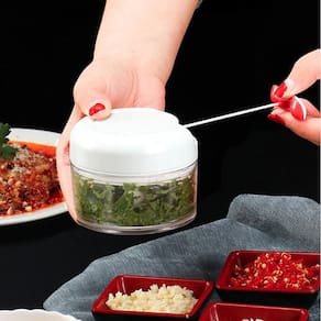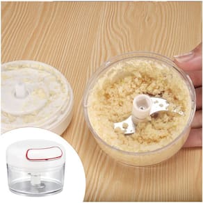 Ideal para triturar e processar pequenas quantidades de alimentos de forma simples, rápida e eficiente. Não perca mais tempo cortando verduras, legumes e frutas em pequenos pedaços. Com o mini triturador, basta inserir o alimento no recipiente de acrílico, fecha-lo, puxar a corda retrátil até estar processado da maneira que desejar. Quanto mais vezes puxar a corda, mais processado será o alimento. Indicado para alimentos pequenos ou cortados em pedaços menores. Graças ao tamanho compacto, a lâmina tem melhor alcance, facilitando triturar e processar poucas quantidades, ao contrários dos trituradores maiores que muitas vezes não trituram alimentos pequenos. Totalmente desmontável para fácil limpeza e higienização. Super prático para usar e guardar Informações sobre o produto: Corpo em Acrílico Lâmina em Aço Inox Acionamento giratório através do puxamento da corda Formato anatômico e prático Não deixa pedaços grandes após o processamento Dimensões aproximadas: Altura 7 cm Diâmetro 9 cm Itens inclusos 01 Triturador. Ean: 7908346249981