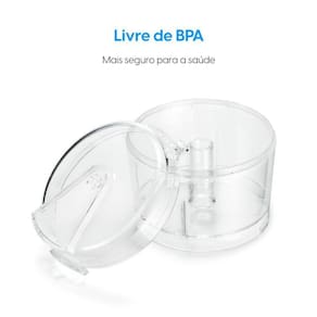 Além disso, sua capacidade de até 400mL proporciona um preparo na medida certa para o dia a dia, sendo compacto o suficiente para economizar espaço em sua cozinha. Com 2 travas de segurança, você pode usar o processador com tranquilidade, garantindo a segurança durante o uso. E o melhor de tudo, ele é livre de bisfenol A (BPA free), assegurando que sua saúde não seja comprometida.
