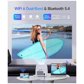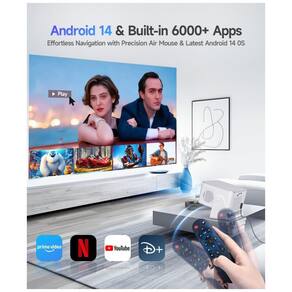 O mini projetor Alwtniet 350max é um dispositivo portátil com sistema Android 14 e chip Allwinner H726, projetado para reprodução de conteúdo em telas grandes de até 140 polegadas. Serve para uso em casa, como cinema doméstico, jogos e educação, com suporte a resoluções até 8K e conexão sem fio via Wifi6 e Bluetooth 5.4.