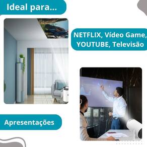 Principais perguntas sobre o produto e respostas: 1 consigo conectar vídeo game nele Sim, consegue usar como reprodução para vídeo games de todas as versões com saída hdmi. 2 consigo conectar hd externo Sim, basta plugar o hd na entrada usb. 3 conexa com celular Sim, via entrada usb. 4 posso conectar caixa de som Sim, apesar dele ter uma caixa de som embutida é possível conectar uma caixa de som pois o aparelho possuí saída p2. 5 vem com netflix instalada Sim, para logar é necessário entrar na conta google e logar a sua conta na netflix 6 consigo baixar outros aplicativos Sim, o projetor possui sistema android como um celular portanto é possível baixar programas na playstore. Homologação Anatel: 112572013224 Marca: Não Informado