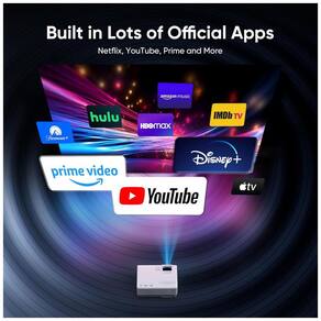 Equipado com montagem em mesa, tripé ou teto, gera imagens em distâncias de 1 m a 5 m. Suporta múltiplos aplicativos via conexão WiFi e opera com codificação de vídeo H.264 e H.265. Indicado para cinema em casa, jogos ou pequenas reuniões em ambientes escuros, não recomendado para apresentações profissionais com texto.