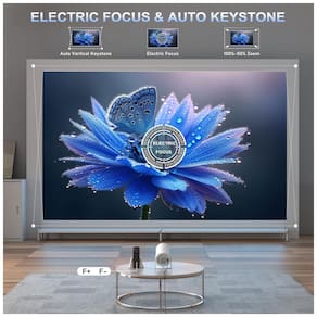 Equipado com conectividade WiFi 6 para streaming estável e Bluetooth 5.2 para pareamento com fones ou caixas de som, gera imagens de 102 cm a 330 cm em distâncias de 0,5 m a 3 m. Suporta montagem em piso com rotação para parede ou teto, operando com codificação de vídeo H.264 e H.265.